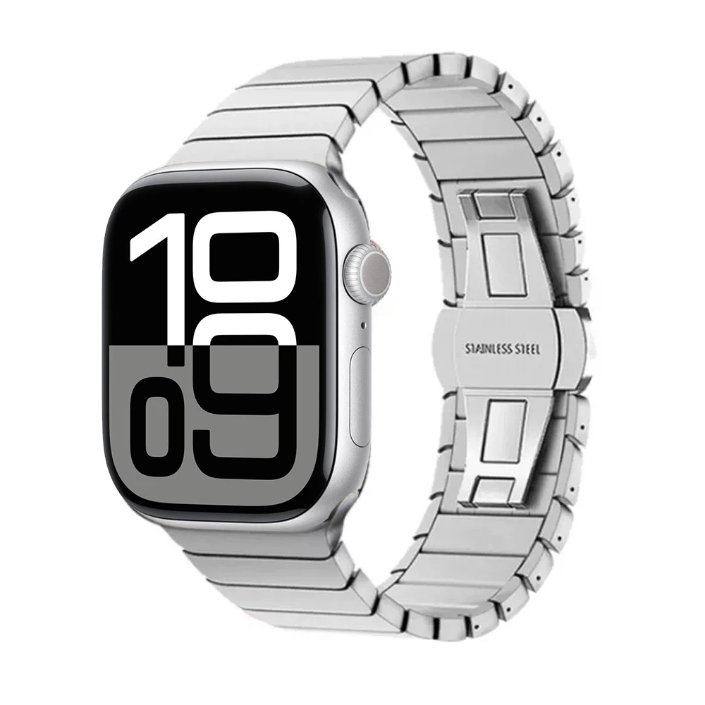 حزام معدني أنيق مصنوع من الفولاذ المقاوم للصدأ، مصمم ليمنح ساعة أبل مظهرًا فاخرًا واحترافيًا يناسب الأعمال والاستخدام اليومي. يتميز بجودة عالية وثبات ممتاز مع راحة في الارتداء ولمسة عصرية مستوحاة من التصميم الكوري.