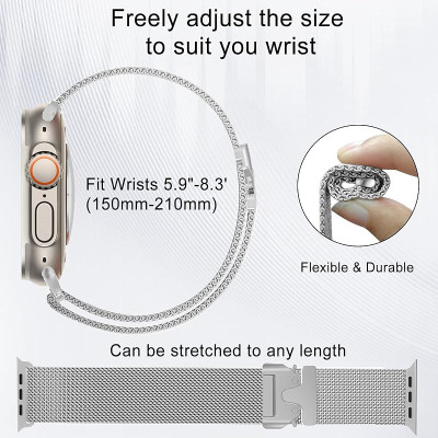 سوار ميلانو ستيل لساعة أبل – معدن مقاوم للصدأ متوافق مع مقاسات 49/46/45/44/42/41/38 مم وإصدارات Apple Watch Series 11/10/9/8/7/6 وUltra