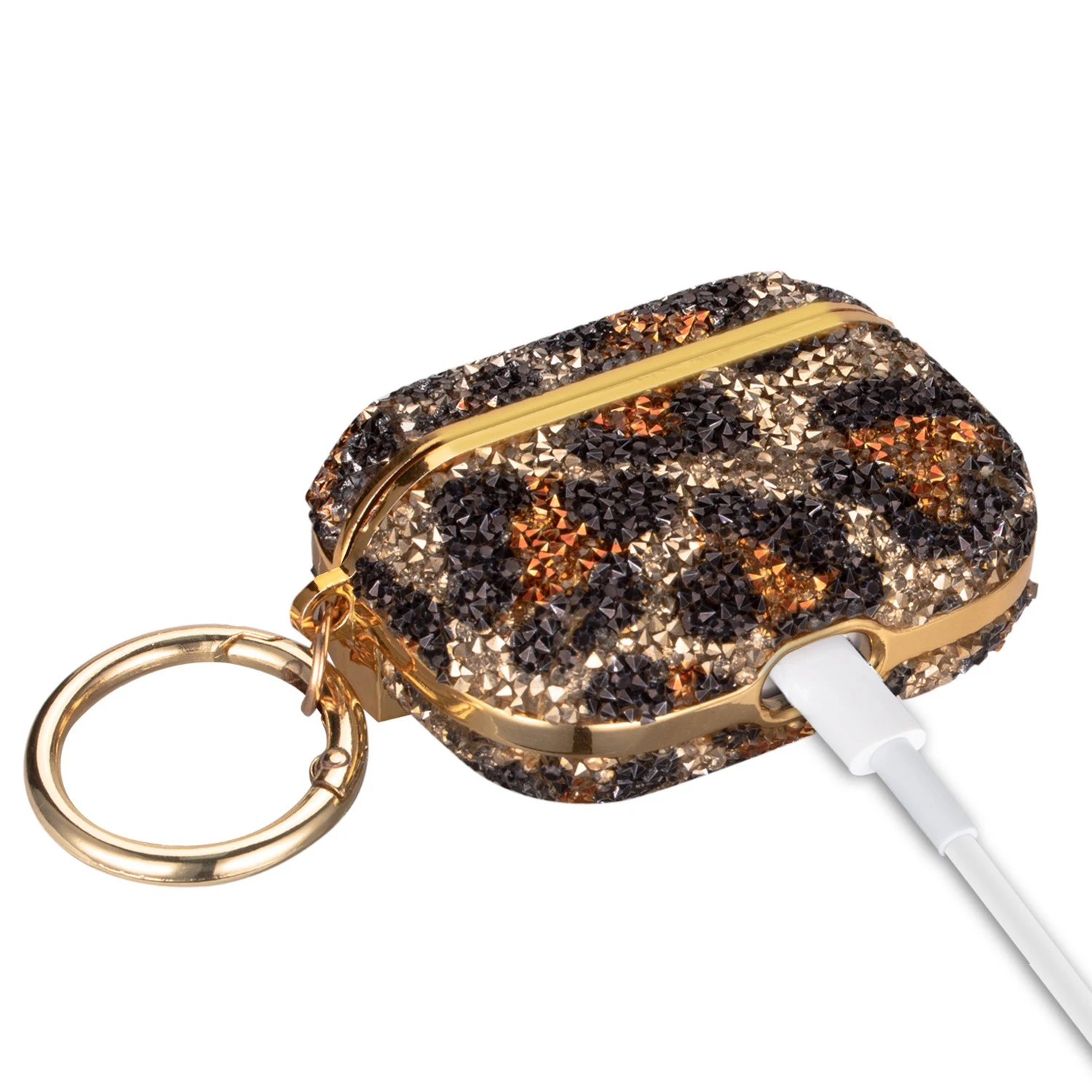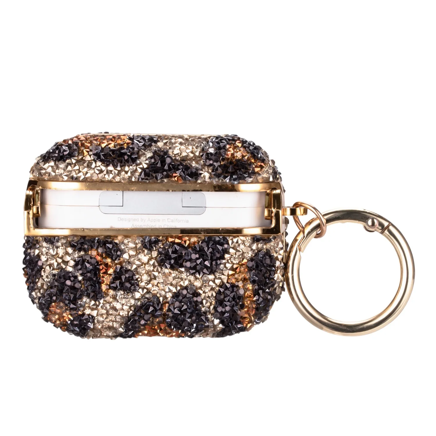 حافظة فاخرة مرصّعة بحجر الراين بتصميم ليوبارد أنيق تضيف لمسة لامعة لسماعات AirPods مع حماية فعّالة من الصدمات والخدوش. خيار مثالي للبنات ومحبي الستايل المميز.